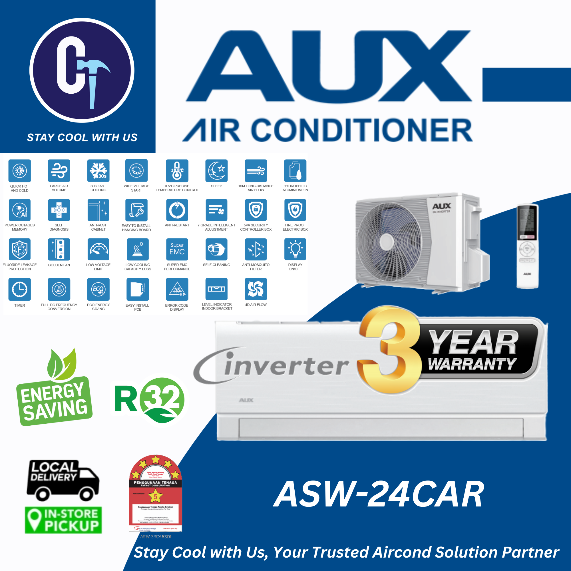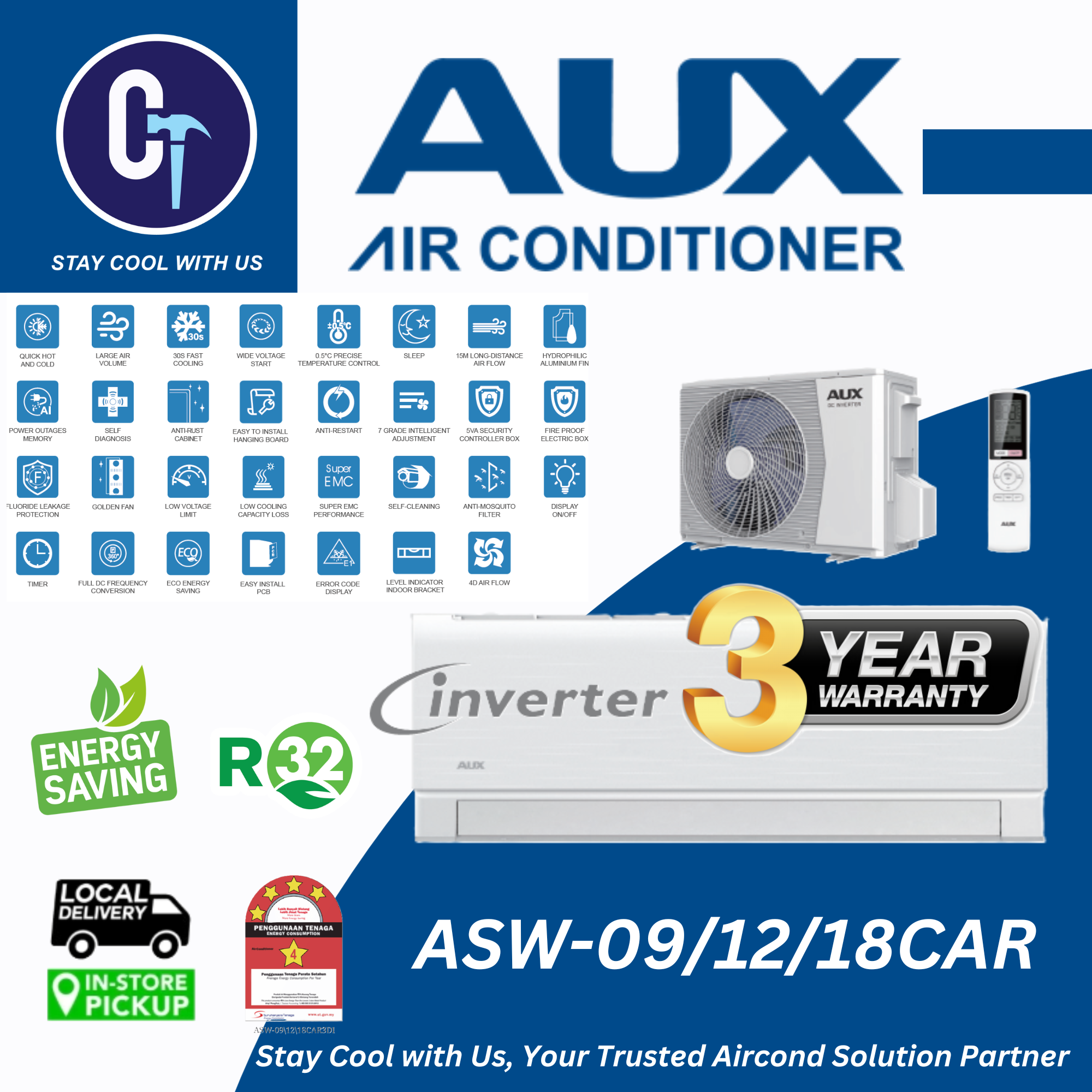 AUX new R32 Refrigerant – C-Series INVERTER Room Air Conditioner:-