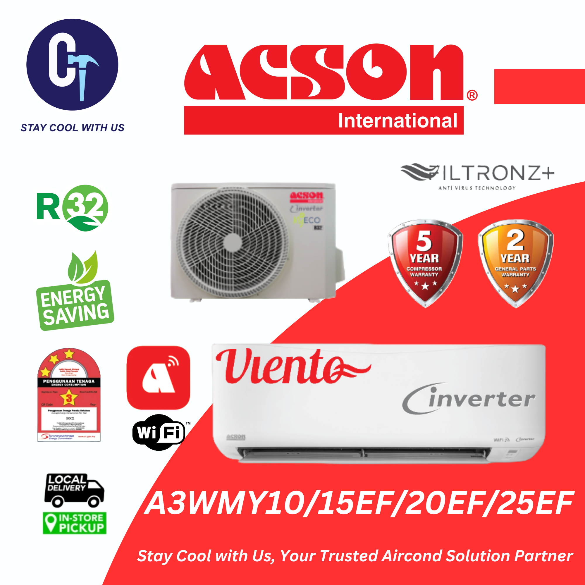 ACSON R32 – Inverter Viento Series Air Conditioner (1.0HP-2.5HP)