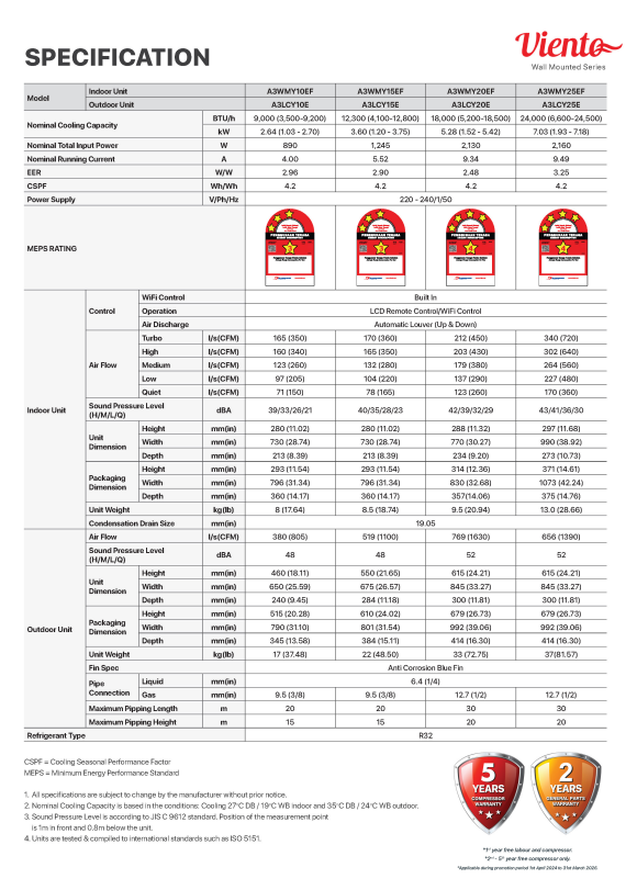 2.0HP – A3WMY20EF (Star Rating – 4)